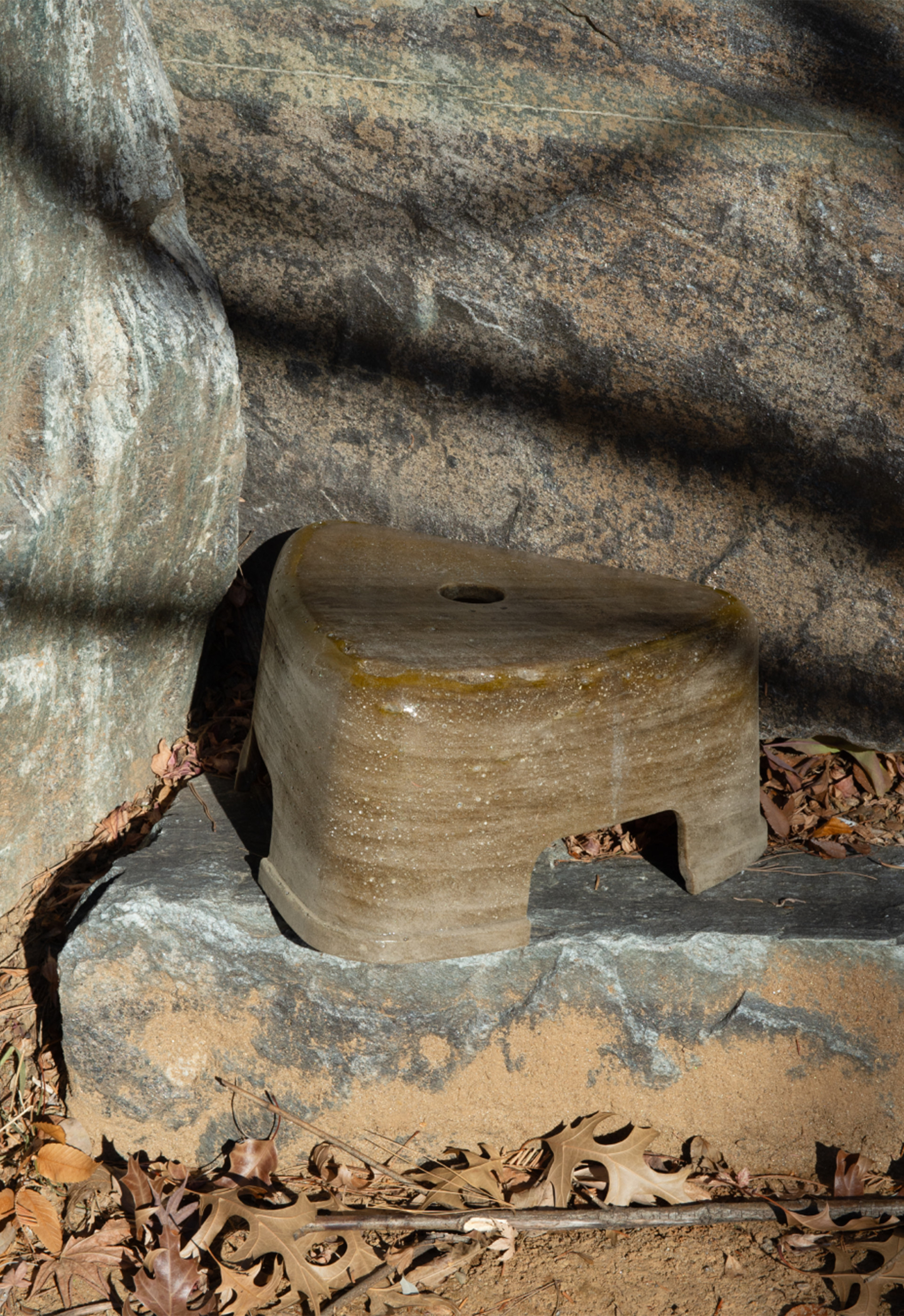 Inspired by the sandstone cliffs and rock-carved heritage of the AlUla region. Although the original designer is unknown, the piece draws from the stable, stackable form of the Korean bathhouse stool, translating geological strata into a sculptural language.