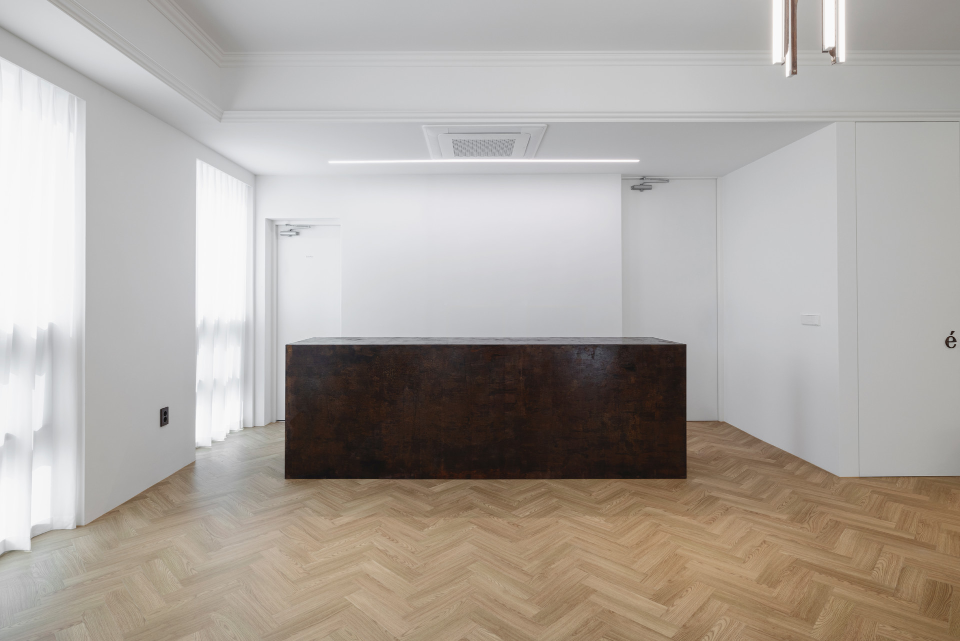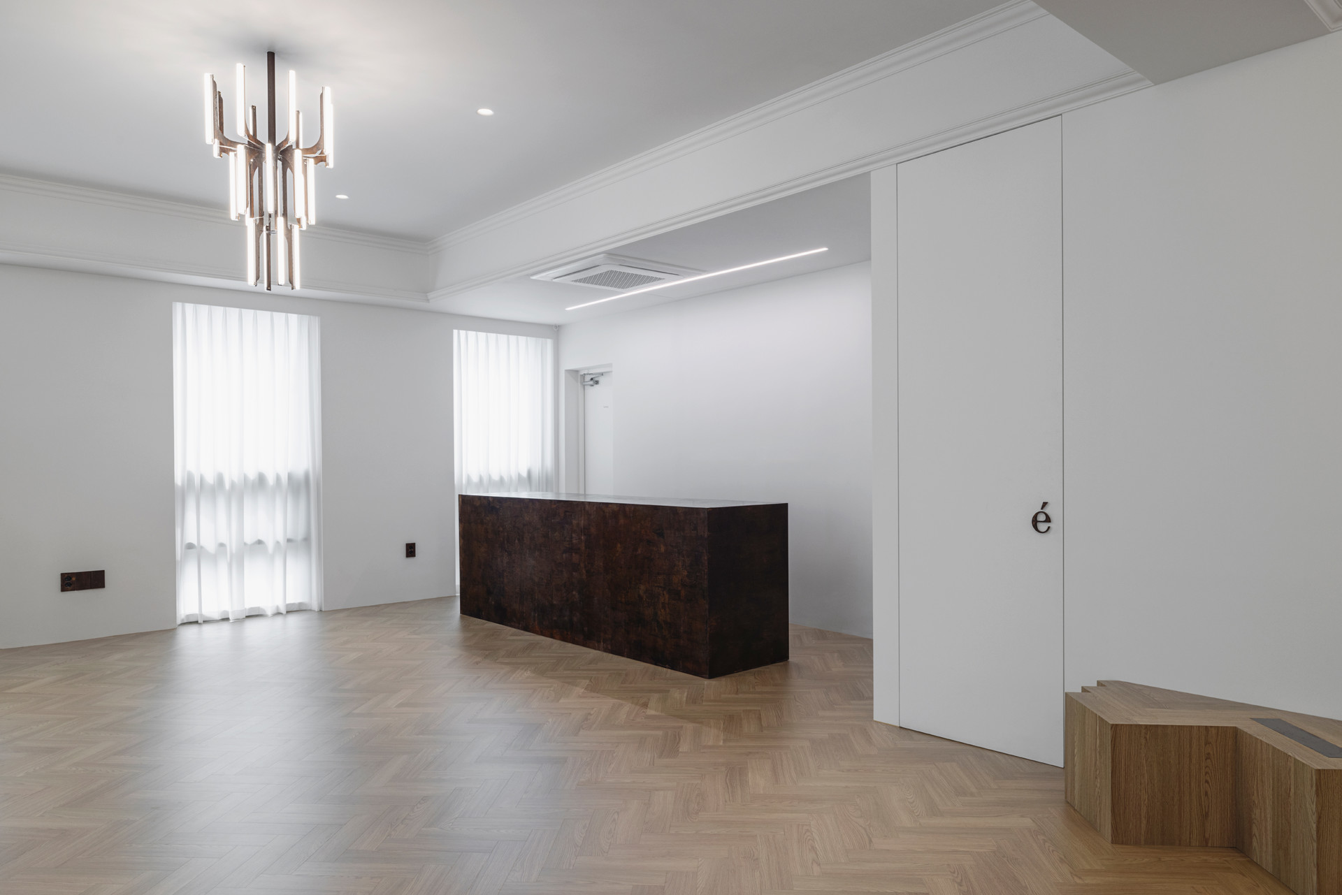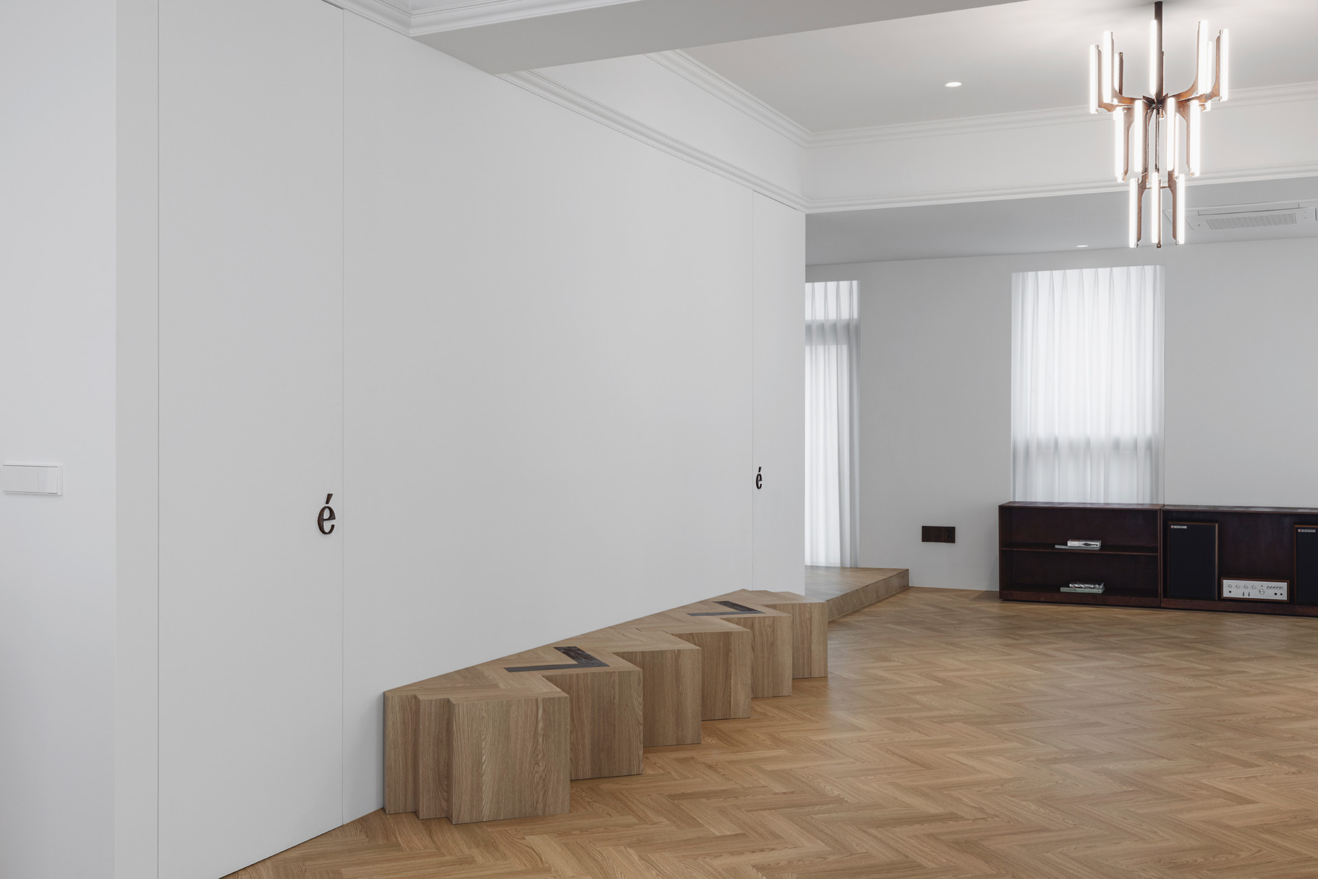 This project draws from the order and proportionality of Haussmannian architecture, which emerged from Georges-Eugène Haussmann’s urban reforms in mid- to late-19th-century Paris, and reinterprets them through a contemporary lens. Just as the Haussmannian style unifies the city through refined façades, balanced proportions, rhythmic stone moldings and balconies, and interiors featuring ornate moldings, herringbone floors, and ceiling decorations that embody European aristocratic aesthetics, this project reimagines those classical principles and decorative structures through the functional design language of modern Seoul.
